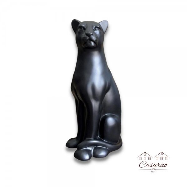 Pantera Sentada 90 cm - Preto Fosco (Fibra de Vidro e Pintura UV)