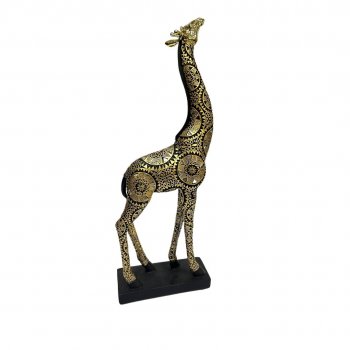Escultura Girafa Dourada e Preta - 40,5CM