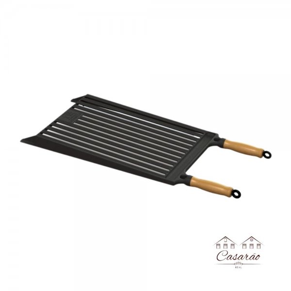 Grelha Argentina 46x30 de ferro fundido e alça de madeira?