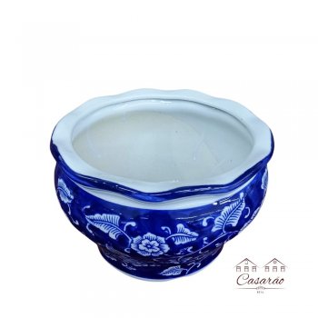Vaso de porcelana azul e branco floral, peça artesanal estilo Porcelana Chinesa.