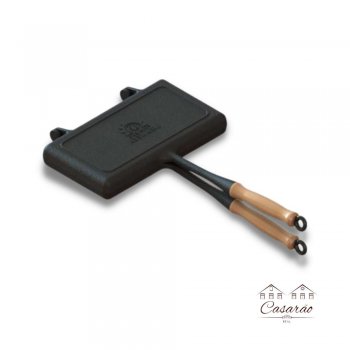 Grelha Argentina 46x30 de ferro fundido e alça de madeira