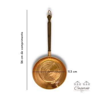 Caçarola de cobre com bico e cabo de madeira decorativa - média