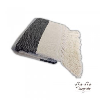 Manta de algodão Chess 1,20X1,80 Cru e Preto